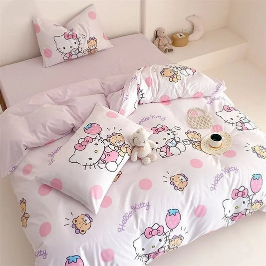 Kuromi Melody Cartoon Duvet Cover Hello Kitty Cinnamoroll Kids Bedding Set Student Dormitory Cute Duvet Cover Bedroom Decor