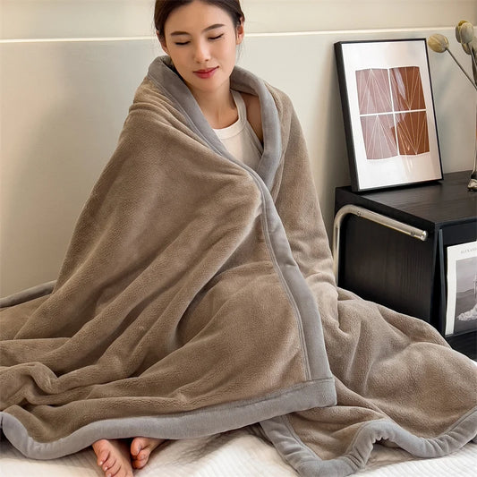 Double Layer Solid Color Milk Velvet Blanket Autumn Winter Thick Warm Plush Blanket for Sofa or Bed