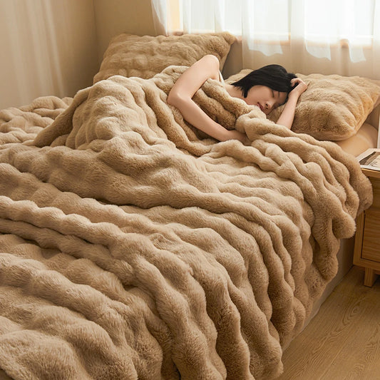 Luxury Double Layer Rabbit Fur Blanket Winter Thick Warm Fluffy Faux Fur Throw Blanket for Sofa or Bed